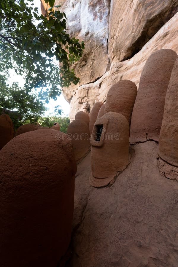 La falaise de Niansogoni abrite un ensemble d’habitations troglodytiques remarquablement bien conservées. On y découvre des greniers de forme ogivale finement décorés, des jarres en terre cuite, des ustensiles de cuisine, des outils agricoles comme des lames de houe et même des cors en fer. Ces objets offrent un aperçu précieux du quotidien des Waras et de leur savoir-faire ancestral.