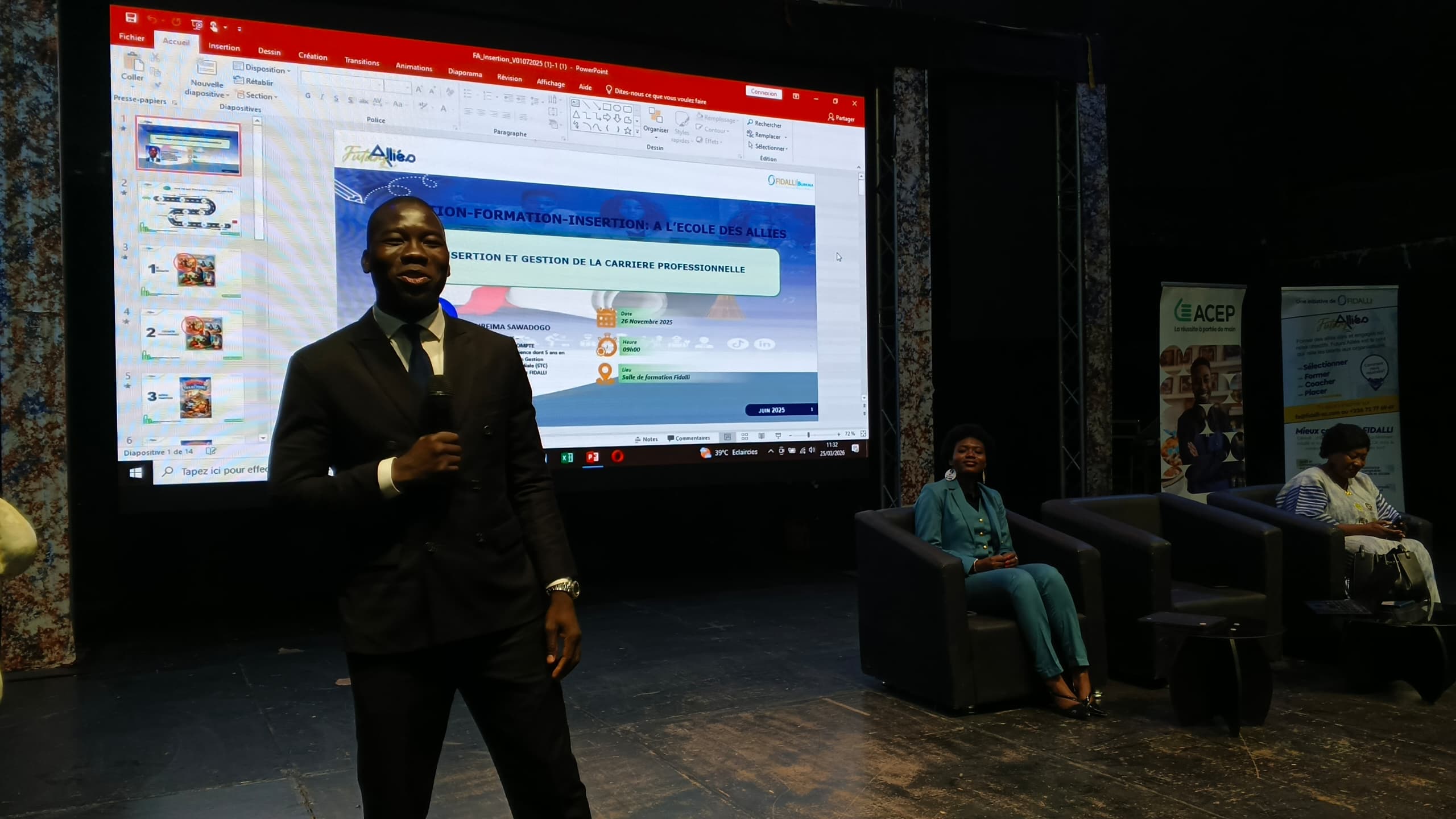 La dimension technique du programme a été développée lors de la présentation de Boureima Sawadogo, Gérant du Cabinet FIDALLI qui porte le projet Futurs Alliés Rumdé. Sous le thème « Entreprendre : à l’école des Alliés », il a livré des enseignements pragmatiques sur la structuration des entreprises, la planification financière et la professionnalisation des projets. « Structurer son entreprise aujourd’hui, c’est consolider son avenir de demain », a‑t‑il affirmé, invitant les femmes à inscrire leurs projets dans une logique de croissance durable.