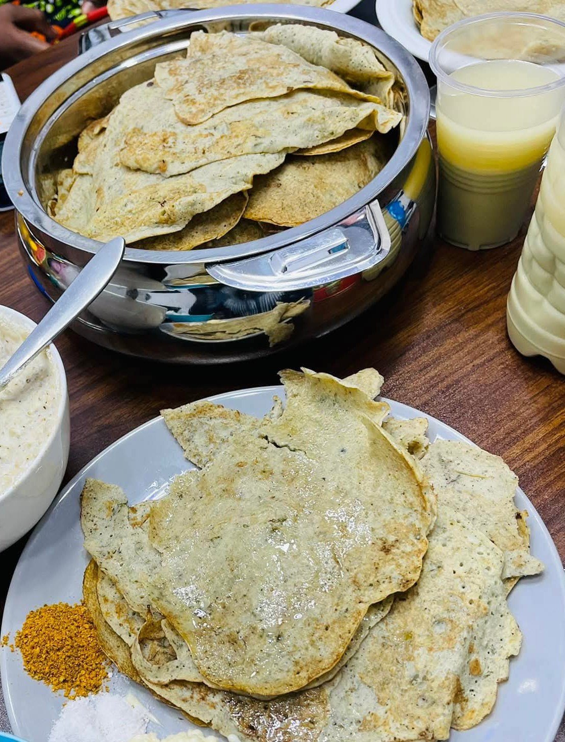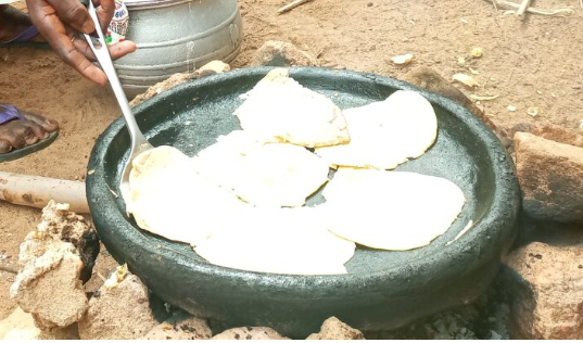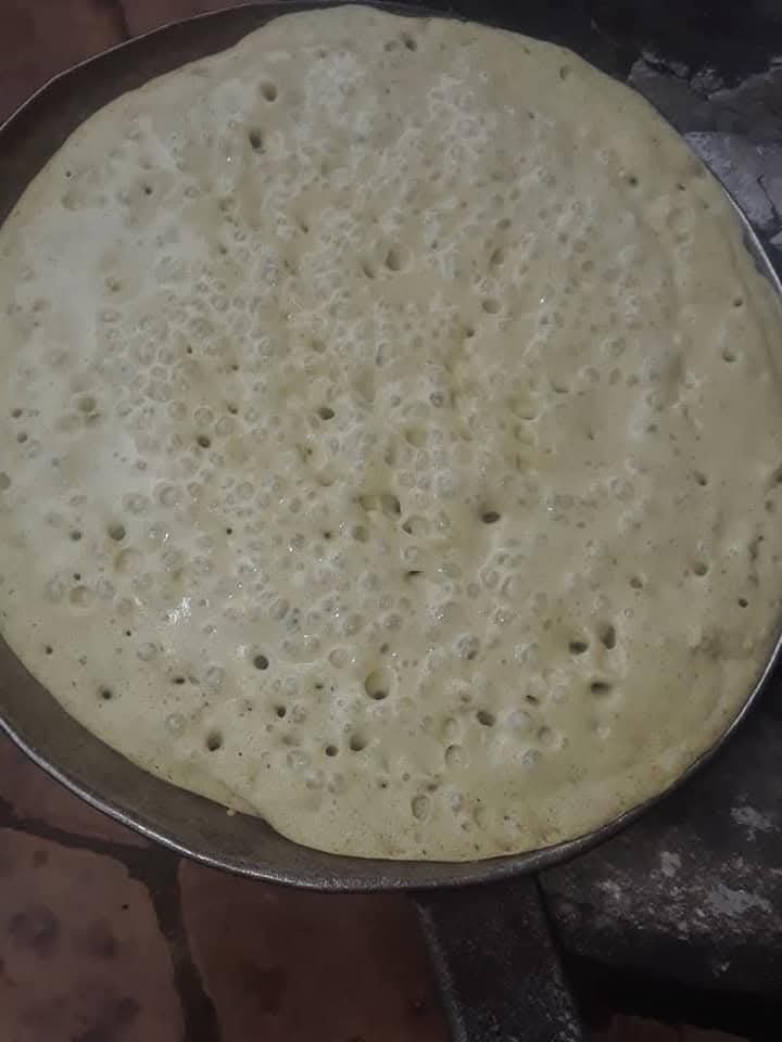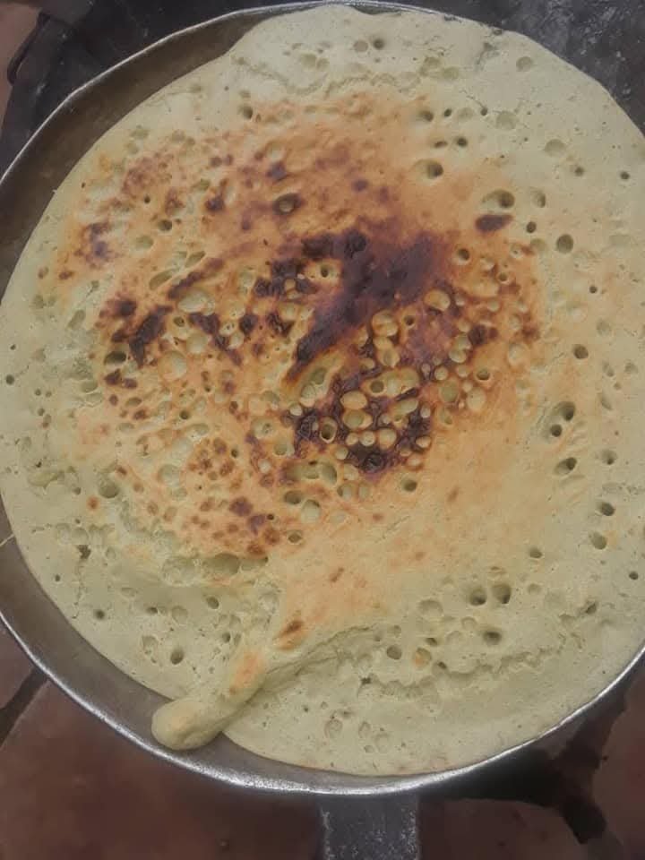 Le feu est vif, les pierres sont en cercle, la poêle de fonte repose, noire et brillante. Elle a vu passer des milliers de galettes. Avec un chiffon roulé, la cuisinière étale de l’huile sur la plaque chaude, puis verse une louche de pâte au centre. En quelques secondes, le cercle s’élargit, se fige, puis se détache lentement. Il est roulé d’un geste sûr, avec cette dextérité que seules les mains habituées possèdent.