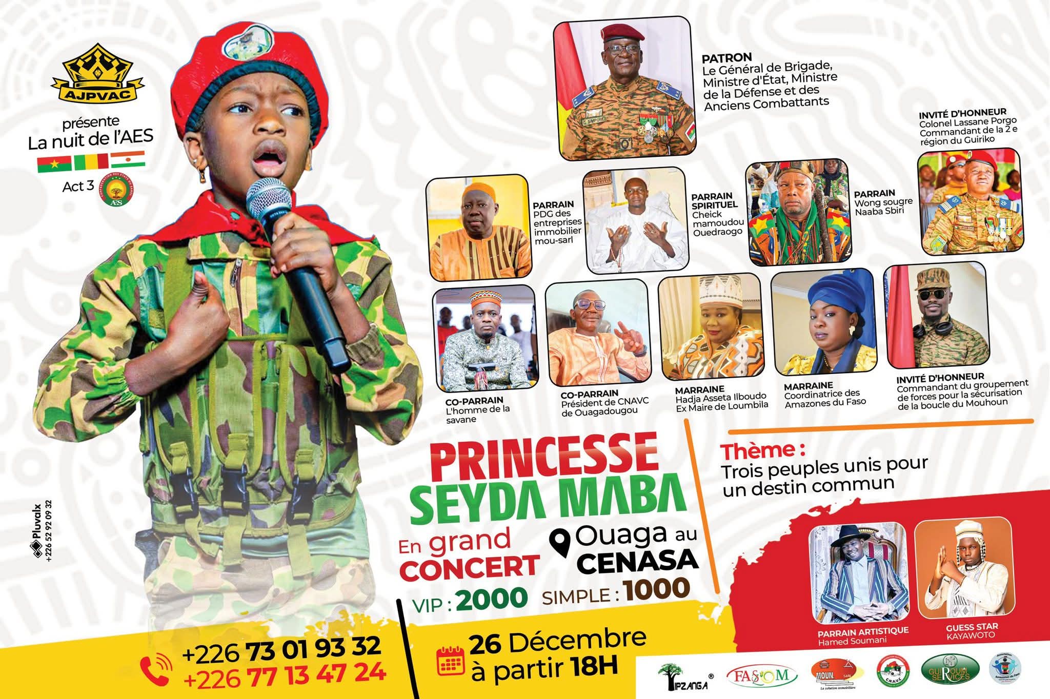 Âgée de seulement 8 ans, l’artiste bénéficiera, à l’occasion de ce rendez-vous culturel, du soutien des autorités burkinabè ainsi que de plusieurs acteurs engagés dans la promotion des valeurs patriotiques et du vivre-ensemble. Élève en classe de CE2, Seyba Maba invite ses parents, ses camarades d’école et l’ensemble de ses admirateurs à prendre part à ce concert qui ambitionne d’égayer les congés scolaires.