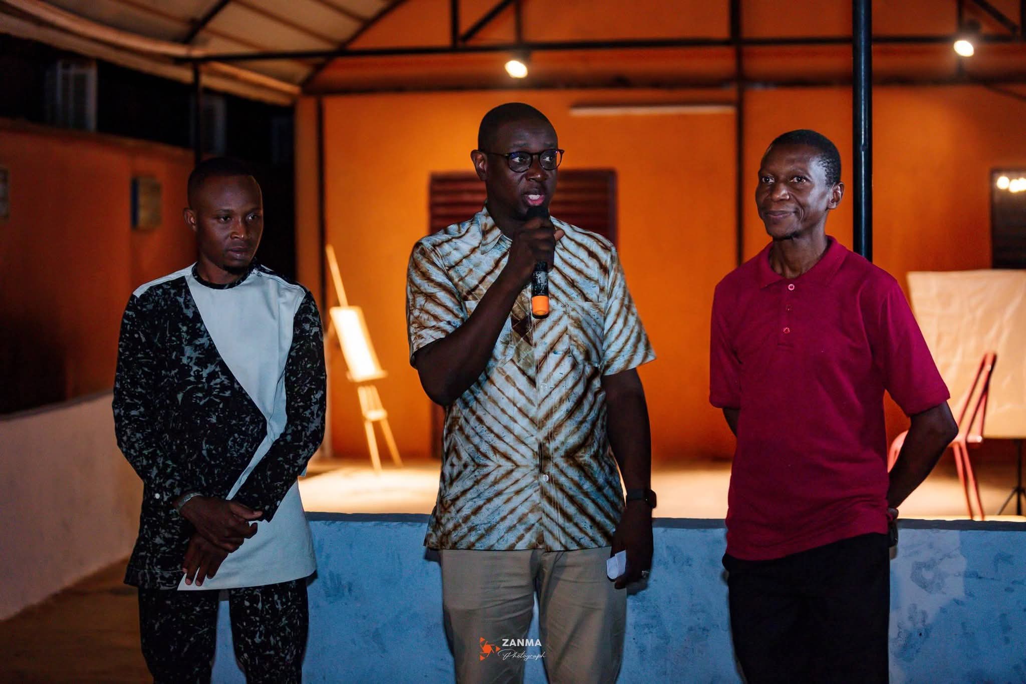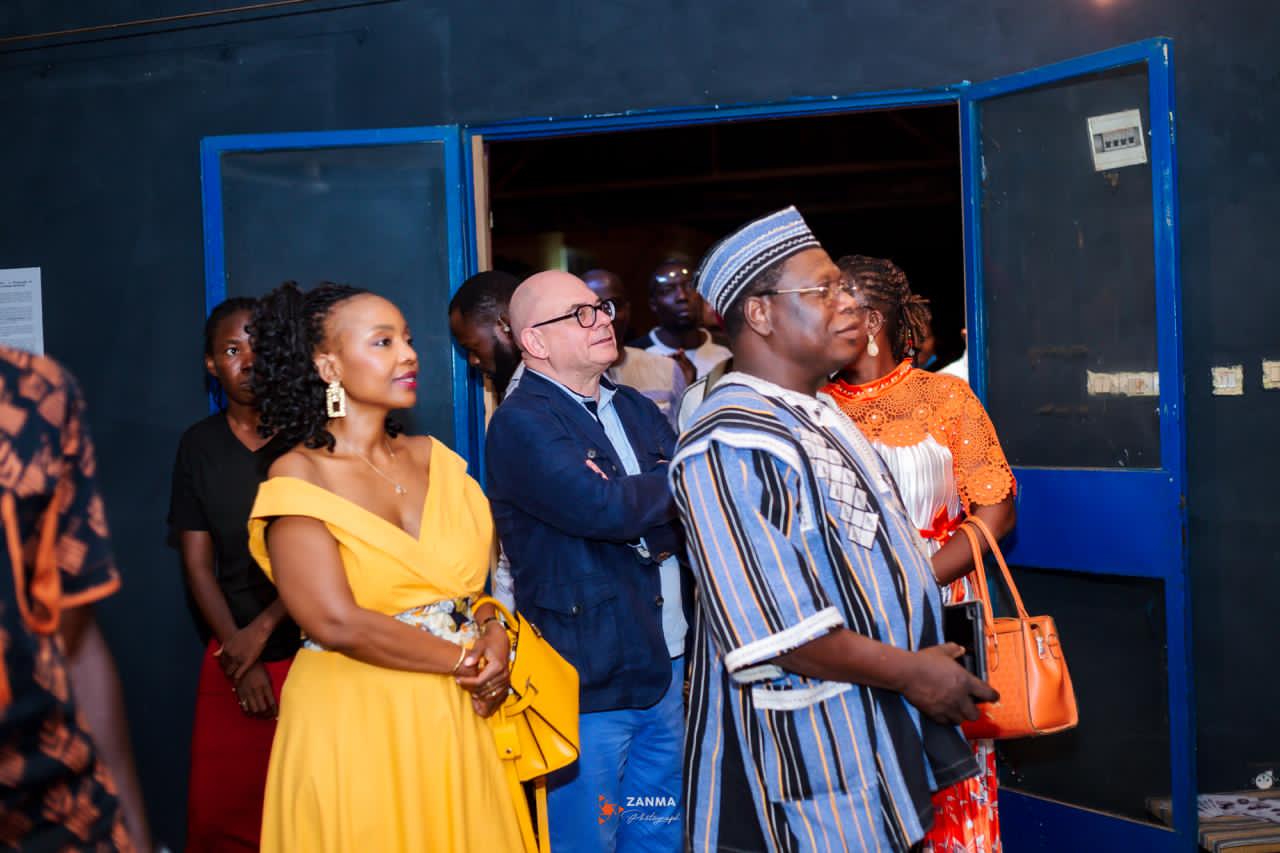 Dès l’ouverture du vernissage, les curateurs ont donné le ton. « Nous sommes tous heureux ce soir de vous accueillir pour vous présenter le talent qu’il est », a déclaré Kira Claude Guingané, curateur de l’exposition et directeur de l’Espace Culturel Gambidi. À ses côtés, Alexandre Méda a contribué à repositionner l’artiste dans une dimension plus artistique. « Nous avons vu dans son travail plus que le rôle de couvrir un événement », a-t-il insisté, évoquant une révélation née lors du FITMO.