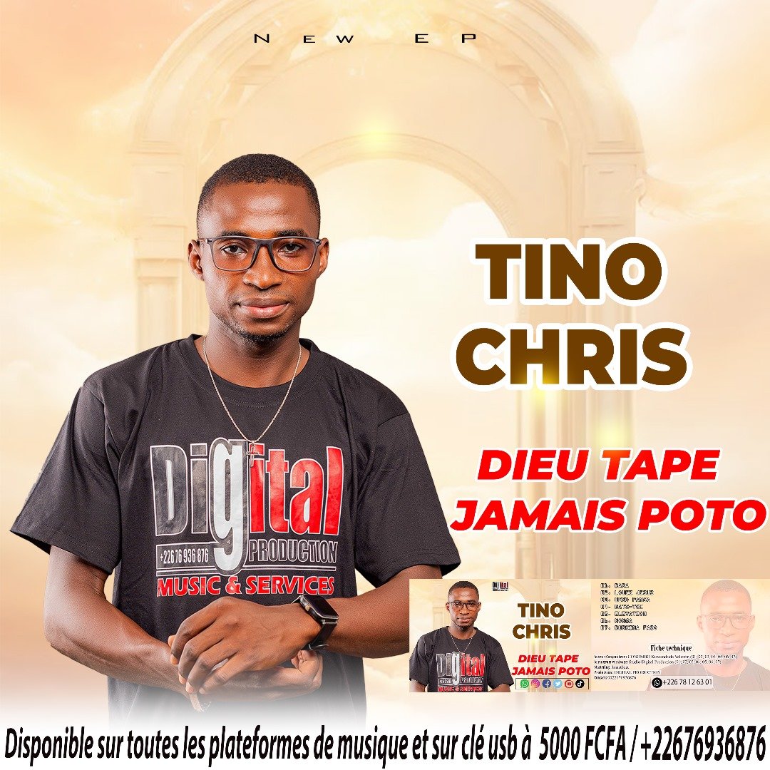 Bonne nouvelle pour les fans : le nouvel EP Dieu tape jamais poto est désormais disponible sur clé USB au prix de 5000 francs CFA, avec livraison gratuite au Burkina Faso. Pour commander, il suffit de contacter Tino Chris au +226 76 93 68 76.